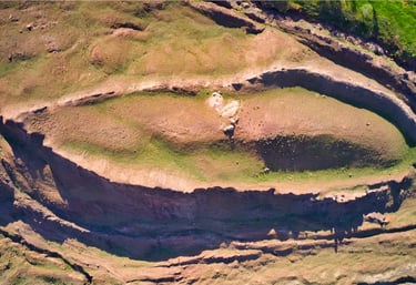 In 1990, Ron performed mini-excavation using shovels. They shaved off very thin layer from one section smoothening it to show the colour difference between the structure members and the natural matrix.
