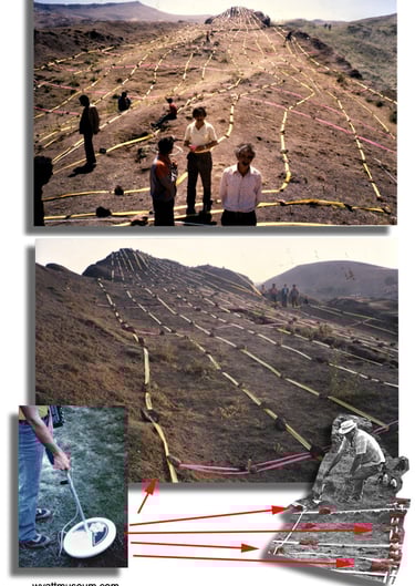 In 1984 Ron and Col. Jim Irwin (former US Astronaut) used metal detectors to the site, to see if there were any pattern of metal on the readings.They found distinct metal lines running down along the entire length of the object and no metal readings were obtained in the surrounding area of the boat-shaped object. (this was really fascinating discovery). They used three different types of metal detectors over the entire structure placing rocks at each metal reading and then attached tapes to show the lines.
